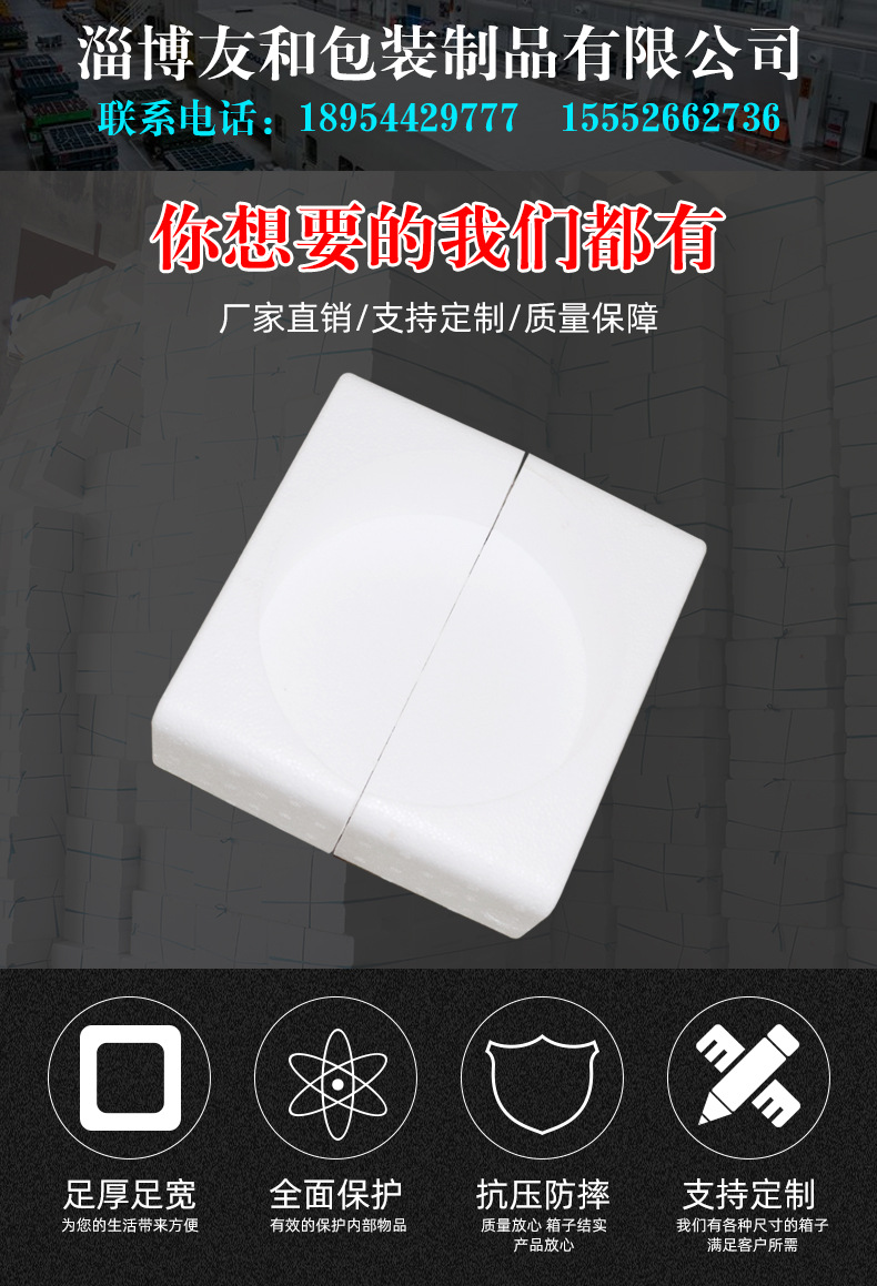 介紹參數圖冊 ????淄博友和包裝制品有限公司是專業的山東泡沫包裝箱加工廠家,本廠主要產品有:泡沫包裝箱,泡沫保鮮箱,水果蔬菜泡沫包裝箱,水果蔬菜泡沫保鮮箱,瓷磚泡沫包裝箱等,產品暢銷全國,深受用戶好評。泡沫包裝定做可以聯系我們網站 http://www.jmao.com.cn/ 上電話,我們會第一時間跟您聯系。 上一篇泡沫箱定做 藥店正方形大藥盒 下一篇藥用泡沫箱 醫用藥盒包裝箱
