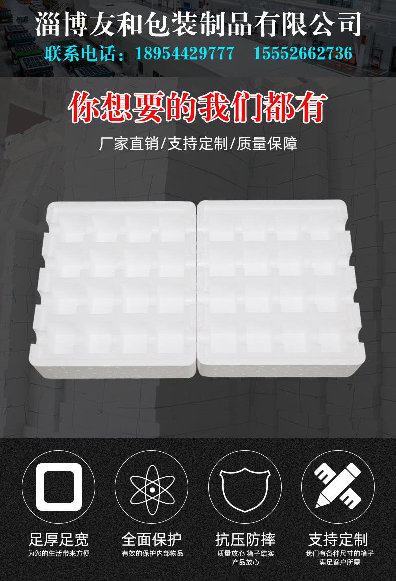 ????淄博友和包裝制品有限公司是專業(yè)的山東泡沫包裝箱加工廠家,本廠主要產(chǎn)品有:泡沫包裝箱,泡沫保鮮箱,水果蔬菜泡沫包裝箱,水果蔬菜泡沫保鮮箱,瓷磚泡沫包裝箱等,產(chǎn)品暢銷全國,深受用戶好評。泡沫包裝定做可以聯(lián)系我們網(wǎng)站 http://www.jmao.com.cn/ 上電話,我們會(huì)第一時(shí)間跟您聯(lián)系。